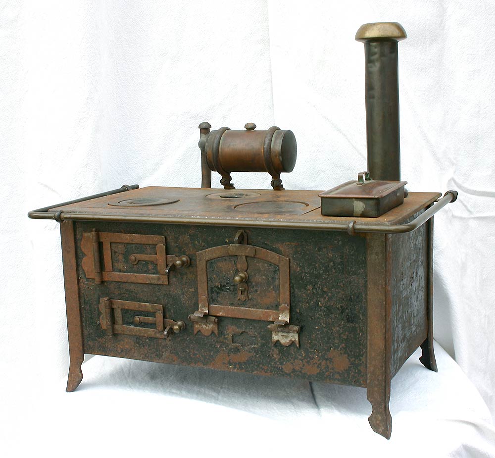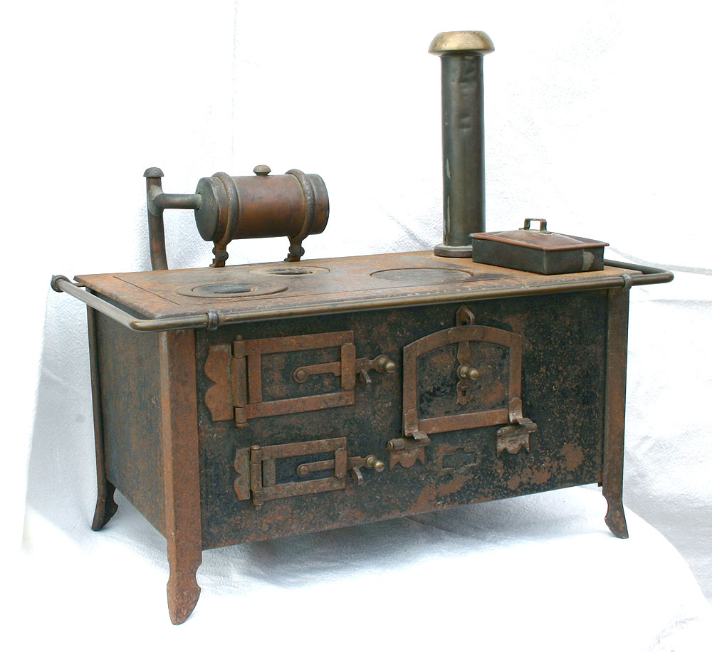 Bei diesem Modell handelt es sich vermutlich um ein Vorführmodell von ca. 1900 eines fliegenden Händlers für Küchenherde. Der kupferne Behälter stellt den Wasserspeicher für ein anzuschließendes Zentralheizungssystem dar. Die Urform der heutigen Zentralheizung. Das Wasser wurde am Herd erhitzt und in Heizkörper angrenzender Räume geleitet.