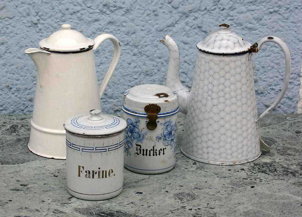 Antike weiß/blaue Küchenemaille